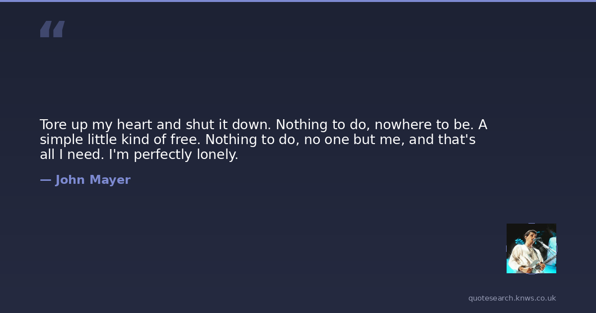 Tore up my heart and shut it down. Nothing to do, nowhere to be. A simple little kind of free. Nothing to do, no one but me, and that's all I need. I'm perfectly lonely.