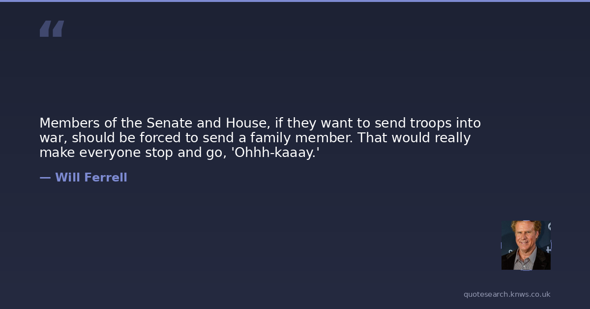 Members of the Senate and House, if they want to send troops into war, should be forced to send a family member. That would really make everyone stop and go, 'Ohhh-kaaay.'