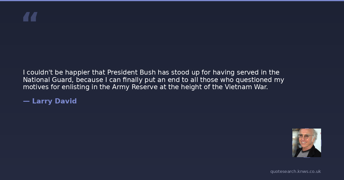 I couldn't be happier that President Bush has stood up for having served in the National Guard, because I can finally put an end to all those who questioned my motives for enlisting in the Army Reserve at the height of the Vietnam War.