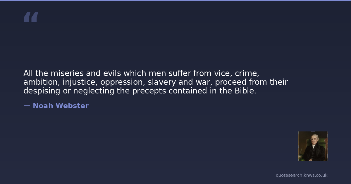 All the miseries and evils which men suffer from vice, crime, ambition, injustice, oppression, slavery and war, proceed from their despising or neglecting the precepts contained in the Bible.