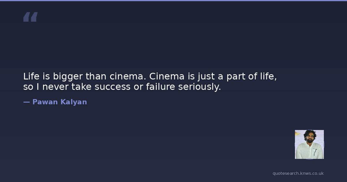 Life is bigger than cinema. Cinema is just a part of life, so I never take success or failure seriously.