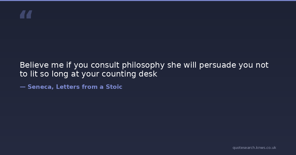 Believe me if you consult philosophy she will persuade you not to lit so long at your counting desk