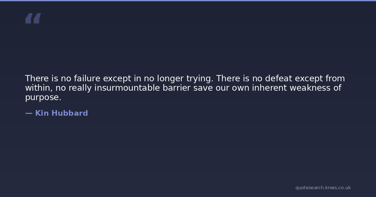 There is no failure except in no longer trying. There is no defeat except from within, no really insurmountable barrier save our own inherent weakness of purpose.