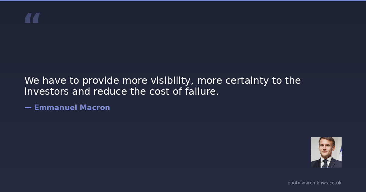 We have to provide more visibility, more certainty to the investors and reduce the cost of failure.