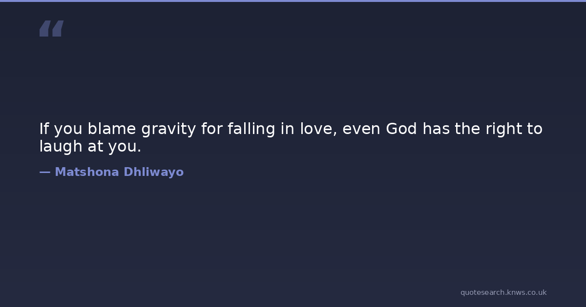 If you blame gravity for falling in love, even God has the right to laugh at you. crush falling-for-someone falling-in-love-quotes funny-quotations funny-quotes god-quotes gravity humor-quotations humor-quotes humorous-quotations humorous-quotes infatuation laugh-quotes love-quotations love-quotes love-quotes-and-sayings Download Image Share on X Share on Facebook Copy Link