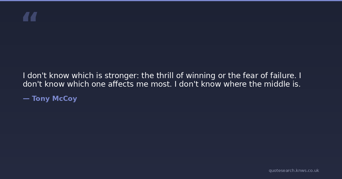 I don't know which is stronger: the thrill of winning or the fear of failure. I don't know which one affects me most. I don't know where the middle is.