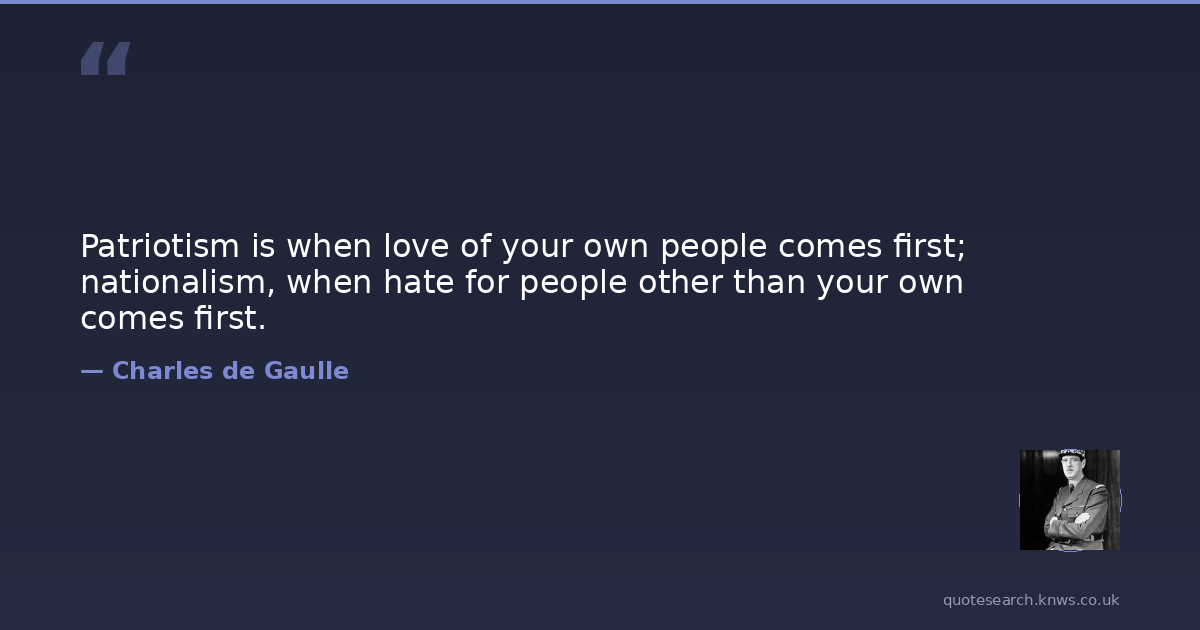 Patriotism is when love of your own people comes first; nationalism, when hate for people other than your own comes first.