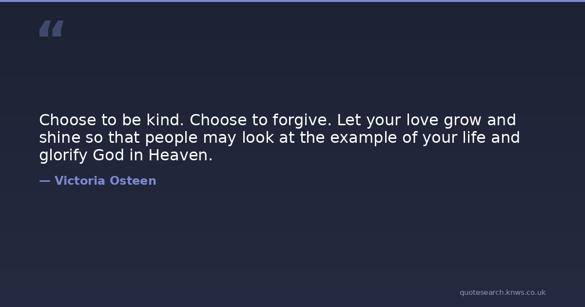 Choose to be kind. Choose to forgive. Let your love grow and shine so that people may look at the example of your life and glorify God in Heaven.