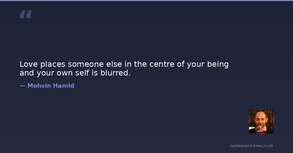 Love places someone else in the centre of your being and your own self is blurred.