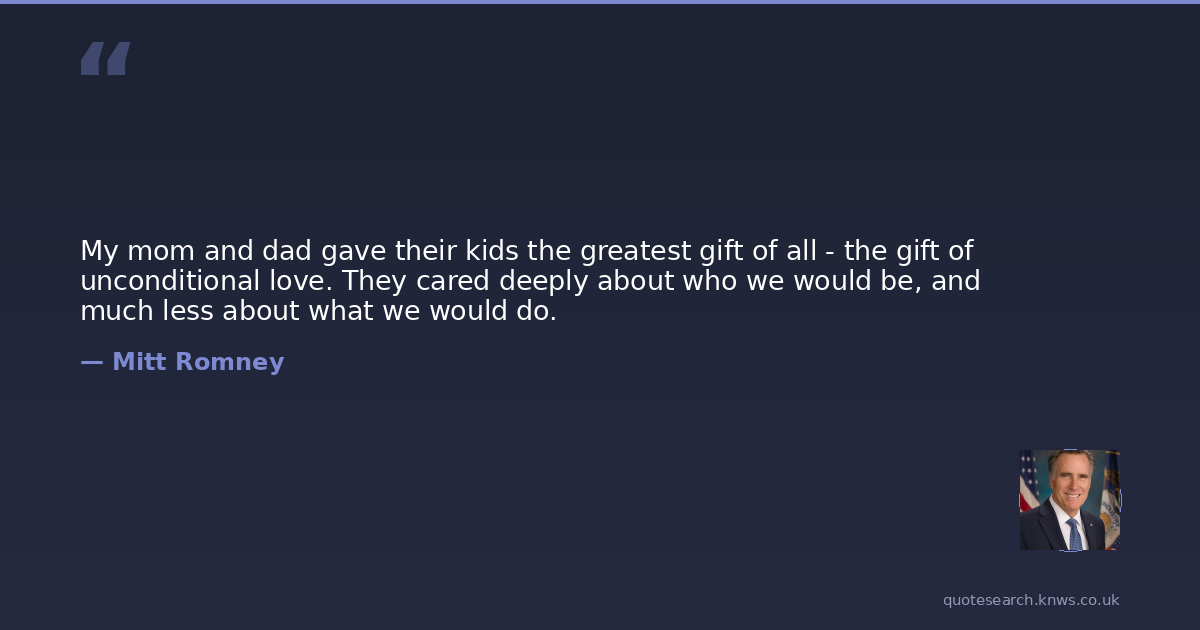My mom and dad gave their kids the greatest gift of all - the gift of unconditional love. They cared deeply about who we would be, and much less about what we would do.