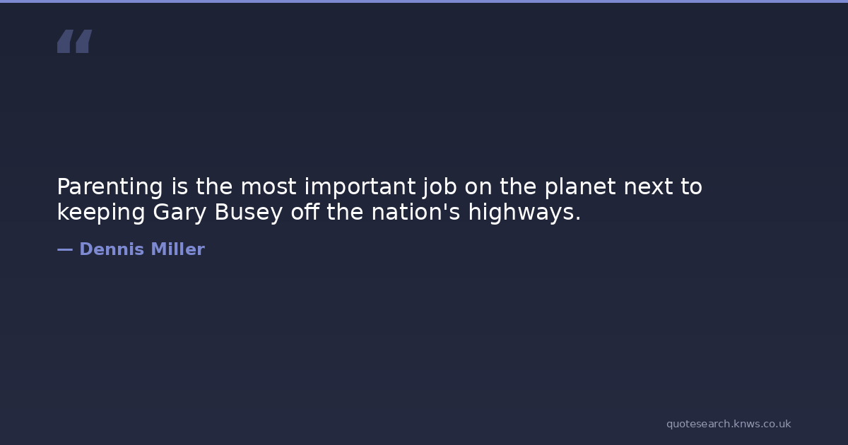 Parenting is the most important job on the planet next to keeping Gary Busey off the nation's highways.