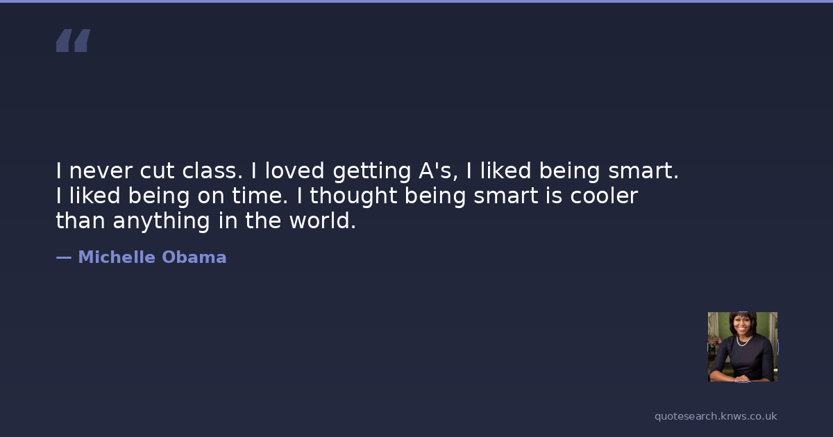 I never cut class. I loved getting A's, I liked being smart. I liked being on time. I thought being smart is cooler than anything in the world.