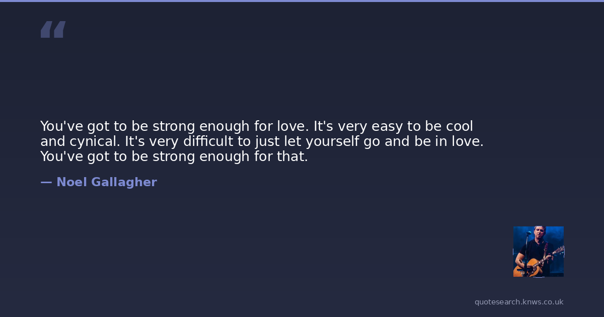 You've got to be strong enough for love. It's very easy to be cool and cynical. It's very difficult to just let yourself go and be in love. You've got to be strong enough for that.