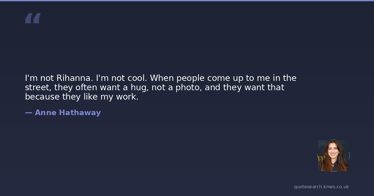 I'm not Rihanna. I'm not cool. When people come up to me in the street, they often want a hug, not a photo, and they want that because they like my work.