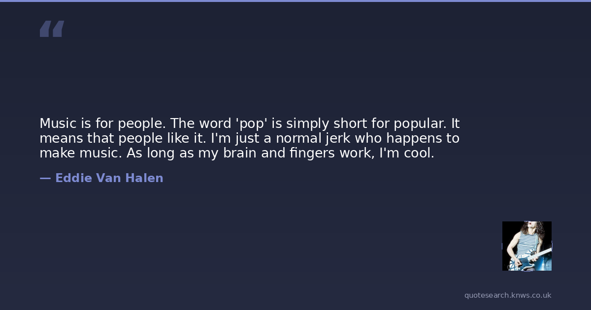 Music is for people. The word 'pop' is simply short for popular. It means that people like it. I'm just a normal jerk who happens to make music. As long as my brain and fingers work, I'm cool.