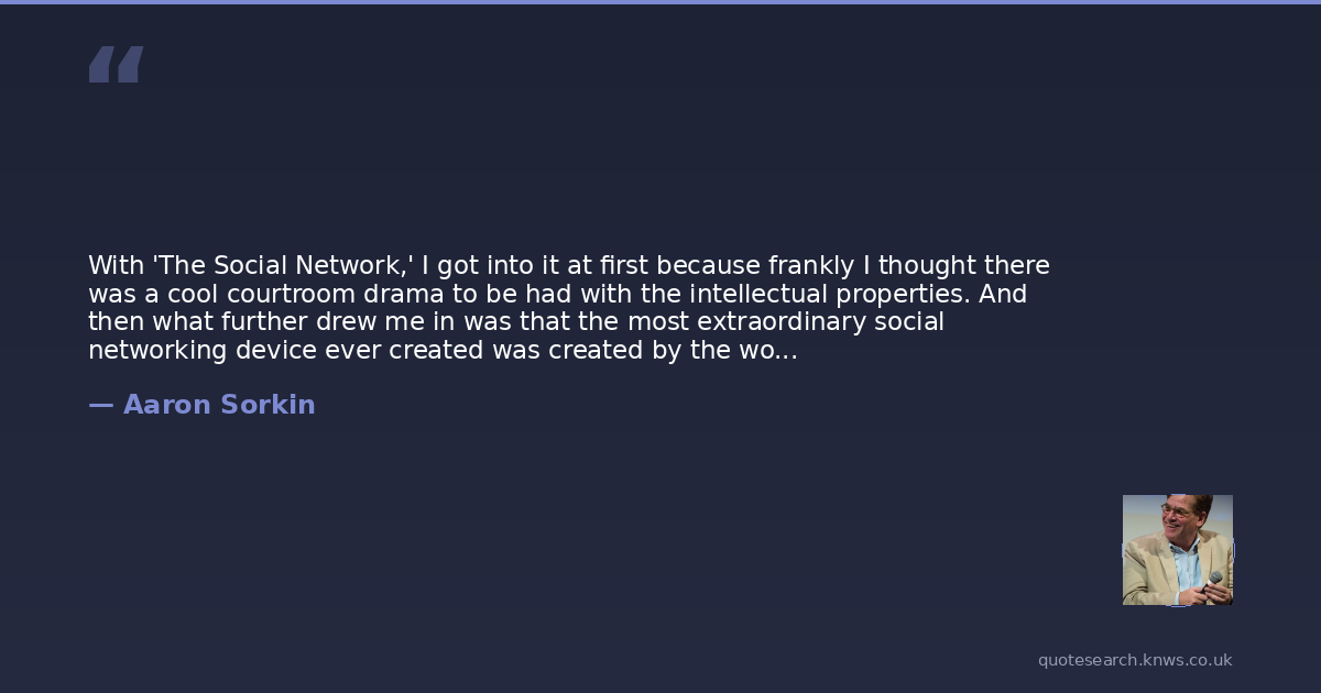 With 'The Social Network,' I got into it at first because frankly I thought there was a cool courtroom drama to be had with the intellectual properties. And then what further drew me in was that the most extraordinary social networking device ever created was created by the world's most antisocial person. I liked that story.