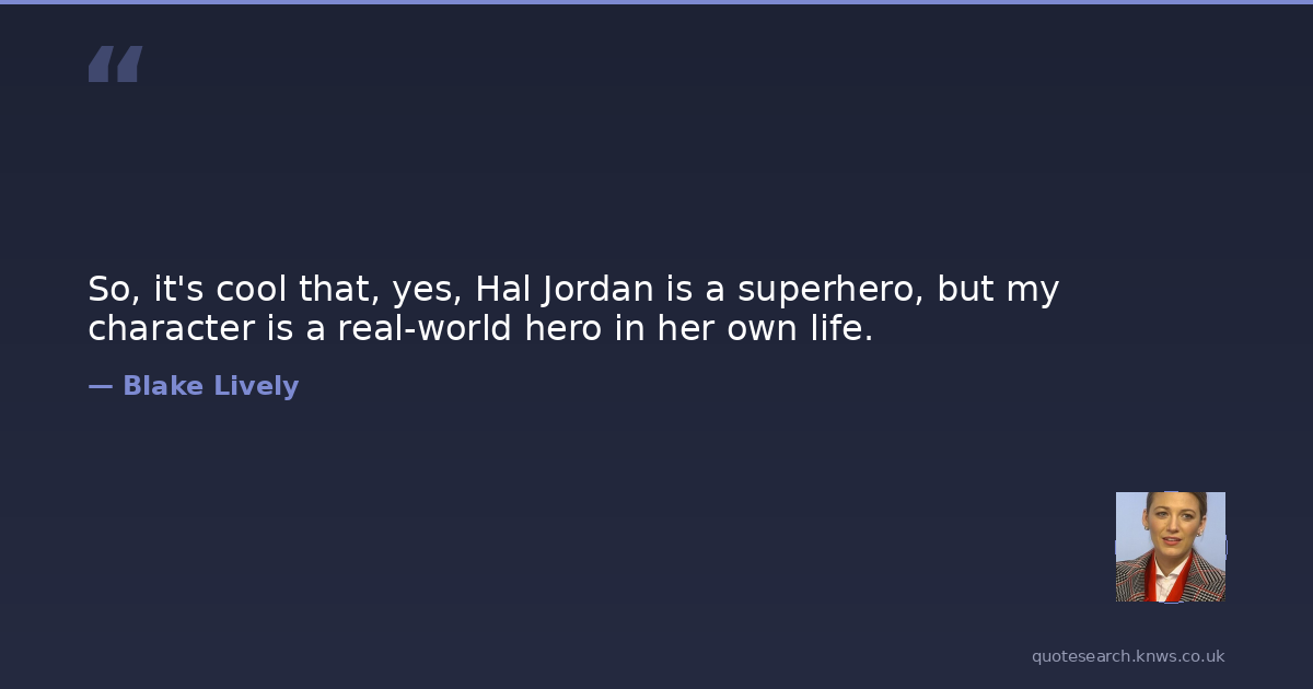 So, it's cool that, yes, Hal Jordan is a superhero, but my character is a real-world hero in her own life.