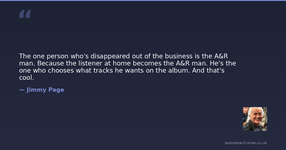 The one person who's disappeared out of the business is the A&R man. Because the listener at home becomes the A&R man. He's the one who chooses what tracks he wants on the album. And that's cool.