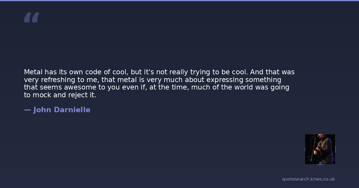 Metal has its own code of cool, but it's not really trying to be cool. And that was very refreshing to me, that metal is very much about expressing something that seems awesome to you even if, at the time, much of the world was going to mock and reject it.