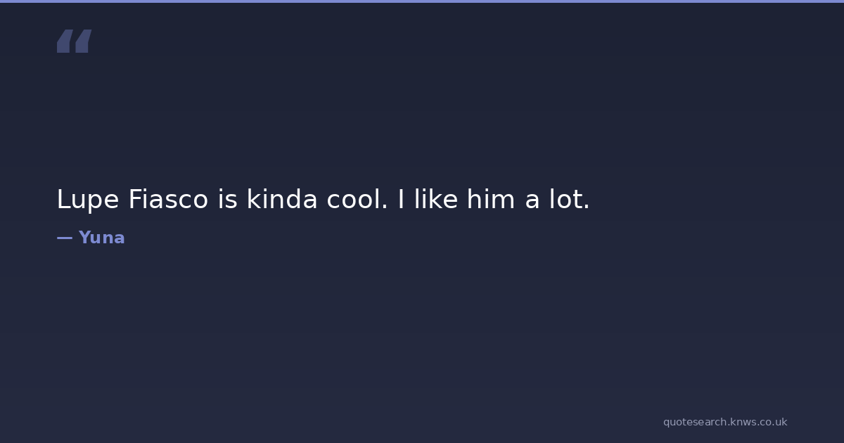 Lupe Fiasco is kinda cool. I like him a lot. Like Him Lot Download Image Share on X Share on Facebook Copy Link