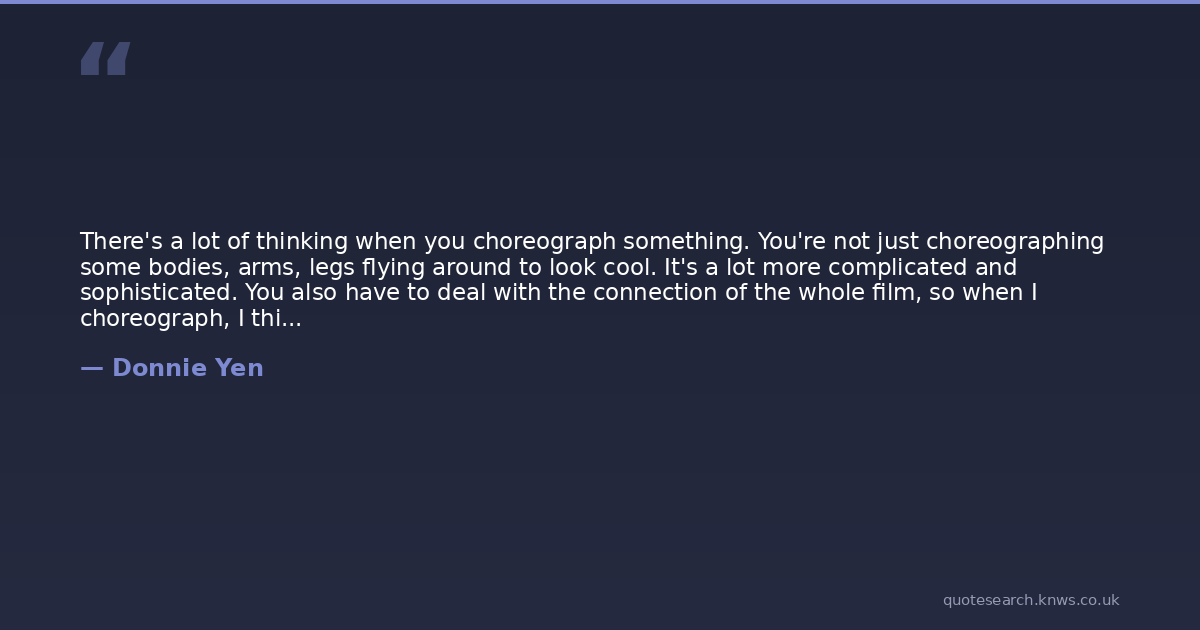 There's a lot of thinking when you choreograph something. You're not just choreographing some bodies, arms, legs flying around to look cool. It's a lot more complicated and sophisticated. You also have to deal with the connection of the whole film, so when I choreograph, I think of the movement itself, the camera angles, the characters.