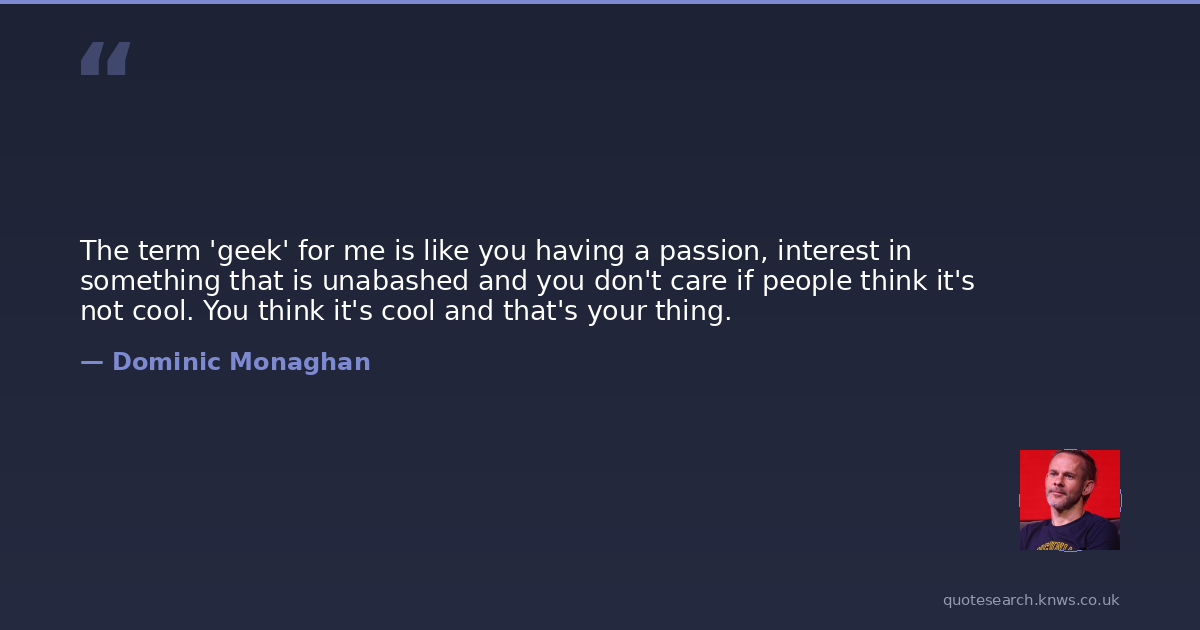 The term 'geek' for me is like you having a passion, interest in something that is unabashed and you don't care if people think it's not cool. You think it's cool and that's your thing.