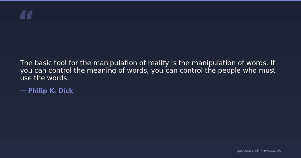 The basic tool for the manipulation of reality is the manipulation of words. If you can control the meaning of words, you can control the people who must use the words.