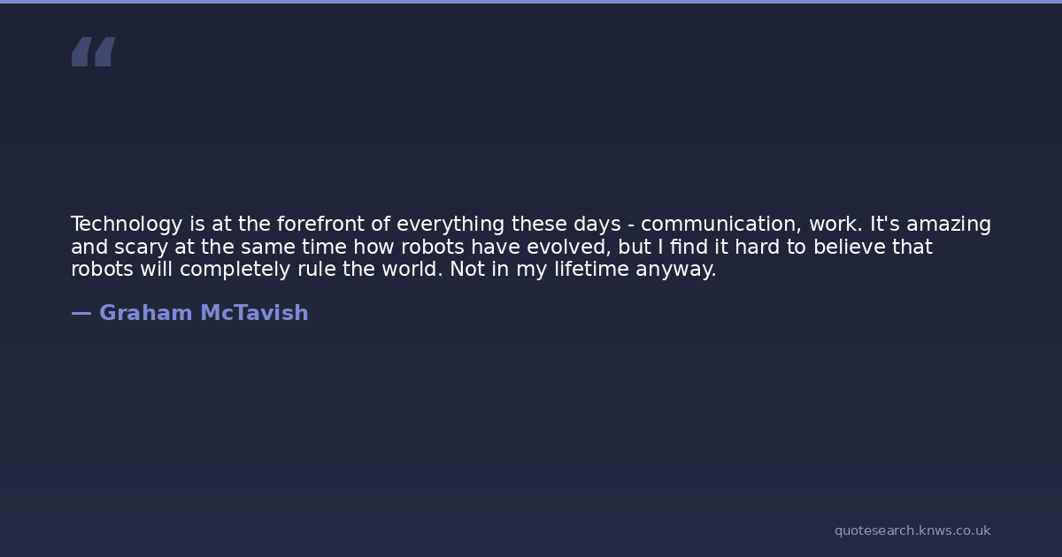 Technology is at the forefront of everything these days - communication, work. It's amazing and scary at the same time how robots have evolved, but I find it hard to believe that robots will completely rule the world. Not in my lifetime anyway.
