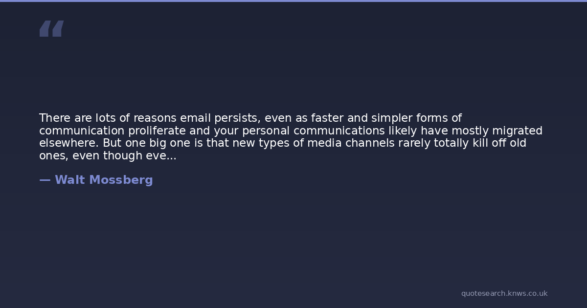 There are lots of reasons email persists, even as faster and simpler forms of communication proliferate and your personal communications likely have mostly migrated elsewhere. But one big one is that new types of media channels rarely totally kill off old ones, even though everyone predicts they will.