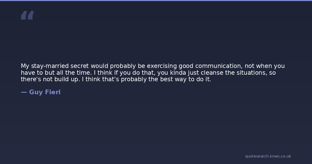 My stay-married secret would probably be exercising good communication, not when you have to but all the time. I think if you do that, you kinda just cleanse the situations, so there's not build up. I think that's probably the best way to do it.