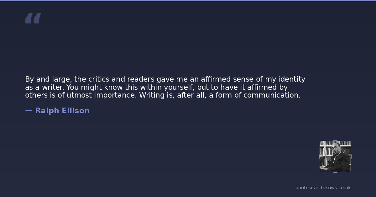 Ralph Ellison was a 20th-century American novelist, literary critic, scholar and writer. Ralph Waldo Ellison was an American writer, literary critic, and scholar best known for his novel Invisible Man, which won the National Book Award in 1953. Read more on Wikipedia →