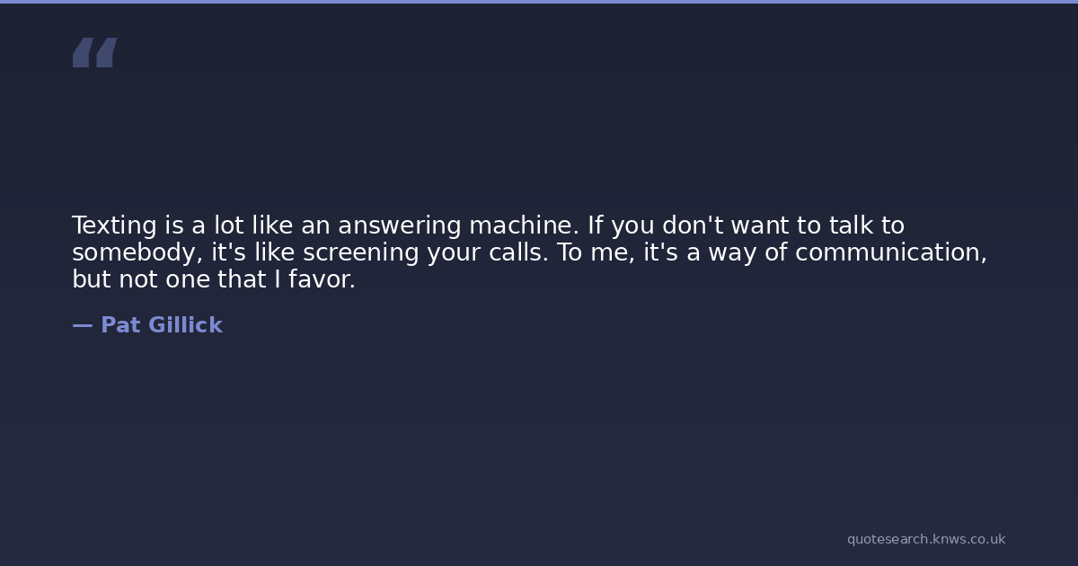 Texting is a lot like an answering machine. If you don't want to talk to somebody, it's like screening your calls. To me, it's a way of communication, but not one that I favor.