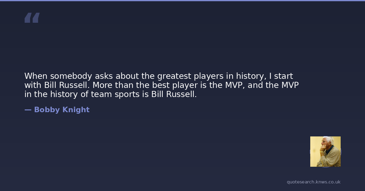 When somebody asks about the greatest players in history, I start with Bill Russell. More than the best player is the MVP, and the MVP in the history of team sports is Bill Russell.