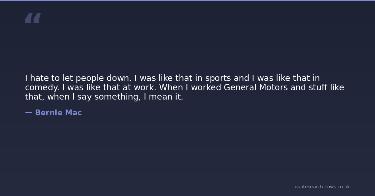 I hate to let people down. I was like that in sports and I was like that in comedy. I was like that at work. When I worked General Motors and stuff like that, when I say something, I mean it.