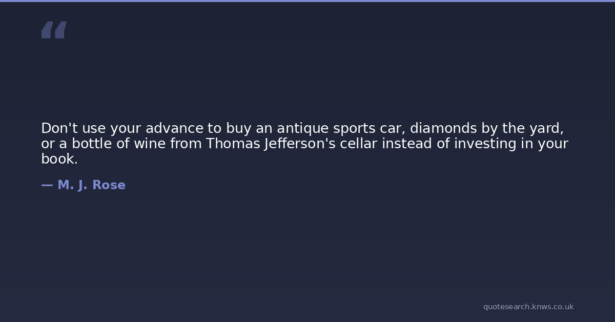 Don't use your advance to buy an antique sports car, diamonds by the yard, or a bottle of wine from Thomas Jefferson's cellar instead of investing in your book.