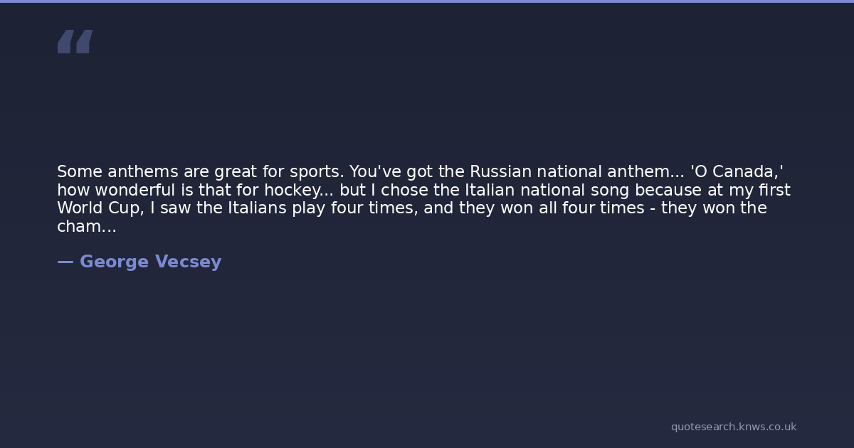 Some anthems are great for sports. You've got the Russian national anthem... 'O Canada,' how wonderful is that for hockey... but I chose the Italian national song because at my first World Cup, I saw the Italians play four times, and they won all four times - they won the championship.