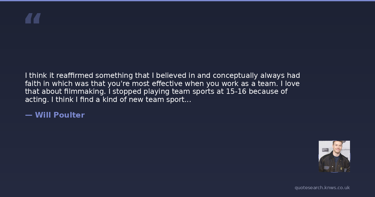 I think it reaffirmed something that I believed in and conceptually always had faith in which was that you're most effective when you work as a team. I love that about filmmaking. I stopped playing team sports at 15-16 because of acting. I think I find a kind of new team sport in filmmaking in a way.