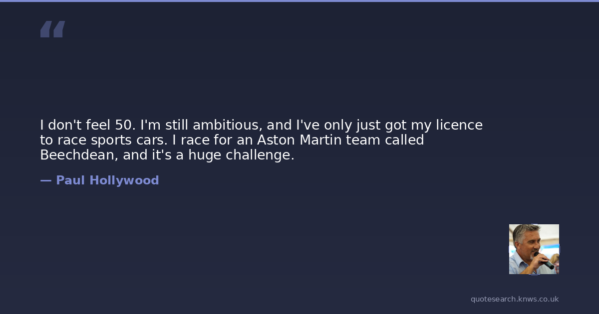 I don't feel 50. I'm still ambitious, and I've only just got my licence to race sports cars. I race for an Aston Martin team called Beechdean, and it's a huge challenge.