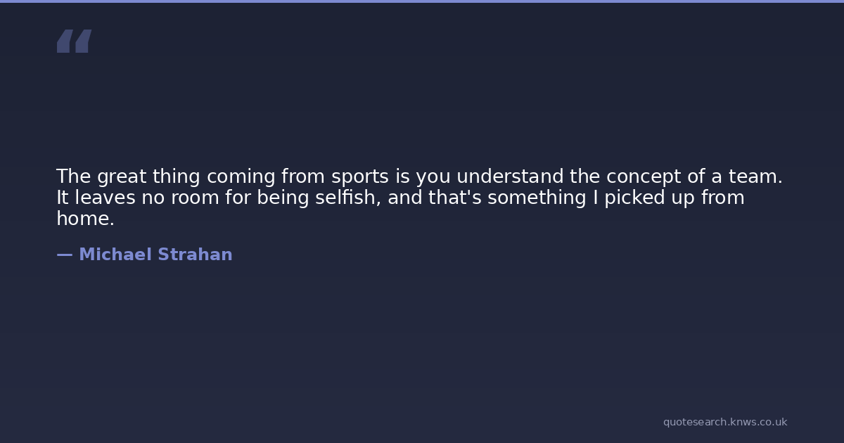 The great thing coming from sports is you understand the concept of a team. It leaves no room for being selfish, and that's something I picked up from home.