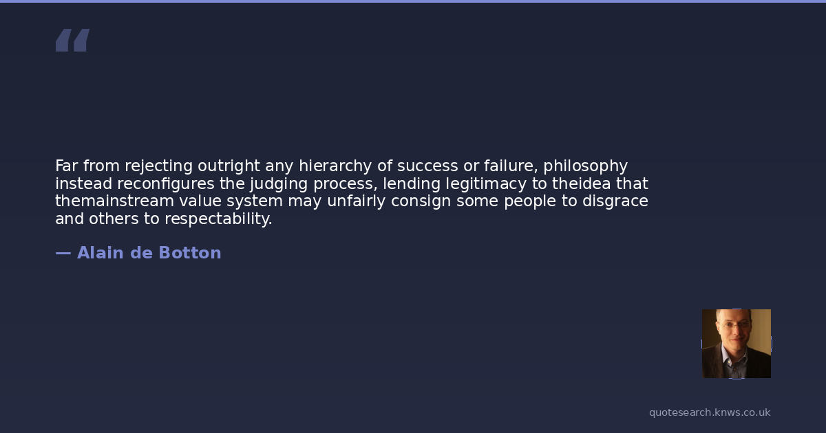Far from rejecting outright any hierarchy of success or failure, philosophy instead reconfigures the judging process, lending legitimacy to theidea that themainstream value system may unfairly consign some people to disgrace and others to respectability.