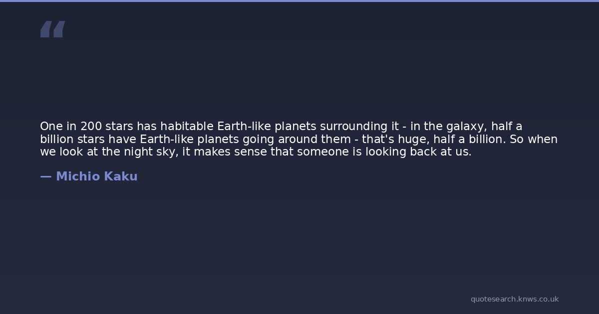 One in 200 stars has habitable Earth-like planets surrounding it - in the galaxy, half a billion stars have Earth-like planets going around them - that's huge, half a billion. So when we look at the night sky, it makes sense that someone is looking back at us.