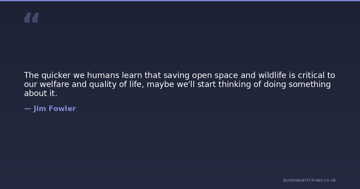 The quicker we humans learn that saving open space and wildlife is critical to our welfare and quality of life, maybe we'll start thinking of doing something about it.