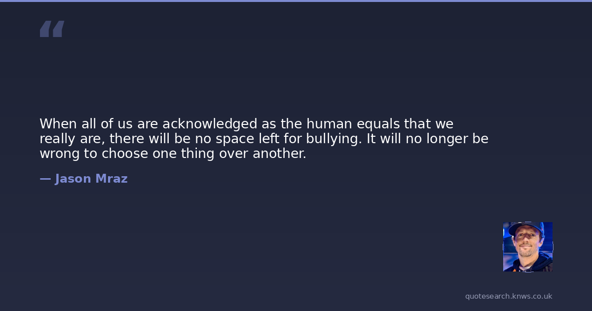 When all of us are acknowledged as the human equals that we really are, there will be no space left for bullying. It will no longer be wrong to choose one thing over another.