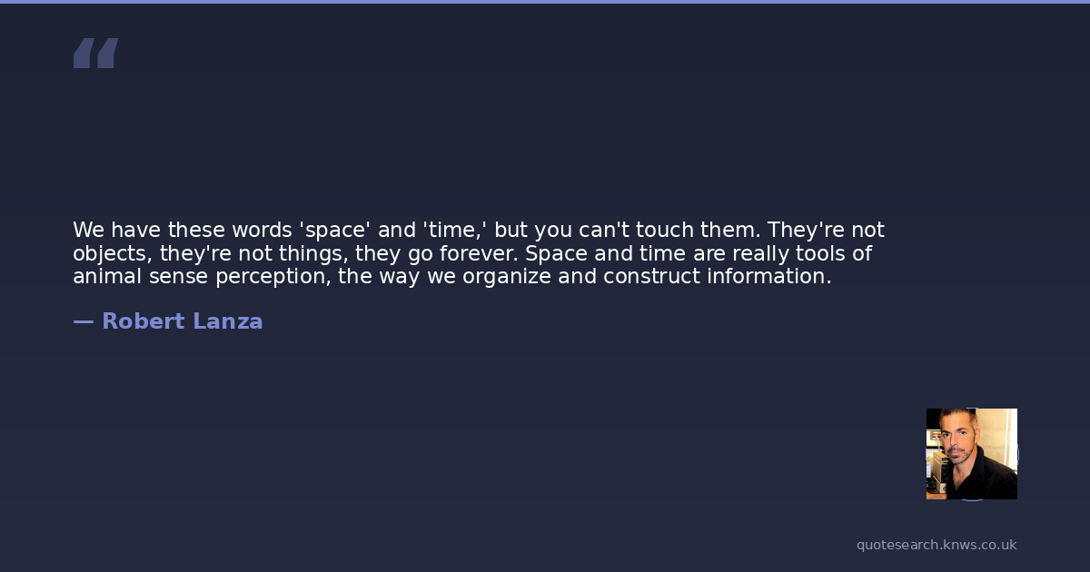 We have these words 'space' and 'time,' but you can't touch them. They're not objects, they're not things, they go forever. Space and time are really tools of animal sense perception, the way we organize and construct information.