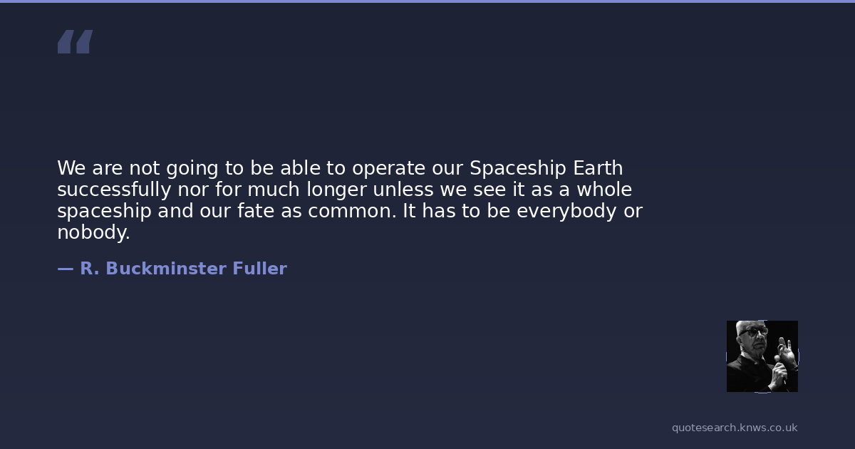 We are not going to be able to operate our Spaceship Earth successfully nor for much longer unless we see it as a whole spaceship and our fate as common. It has to be everybody or nobody.