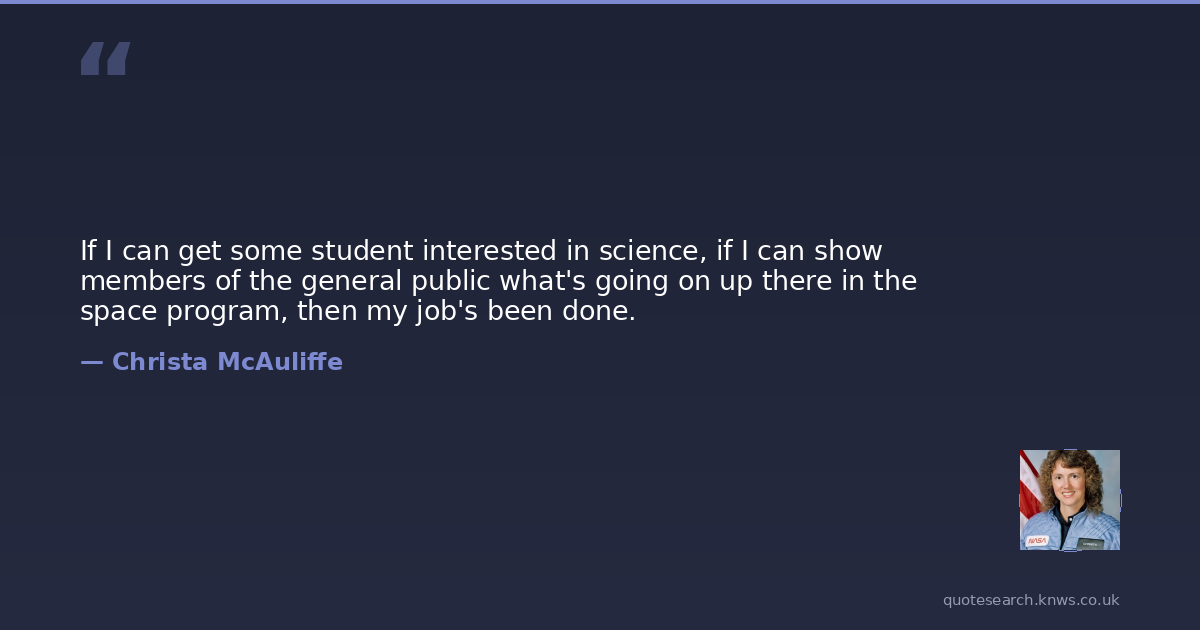 If I can get some student interested in science, if I can show members of the general public what's going on up there in the space program, then my job's been done.
