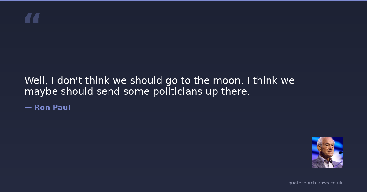 Well, I don't think we should go to the moon. I think we maybe should send some politicians up there.