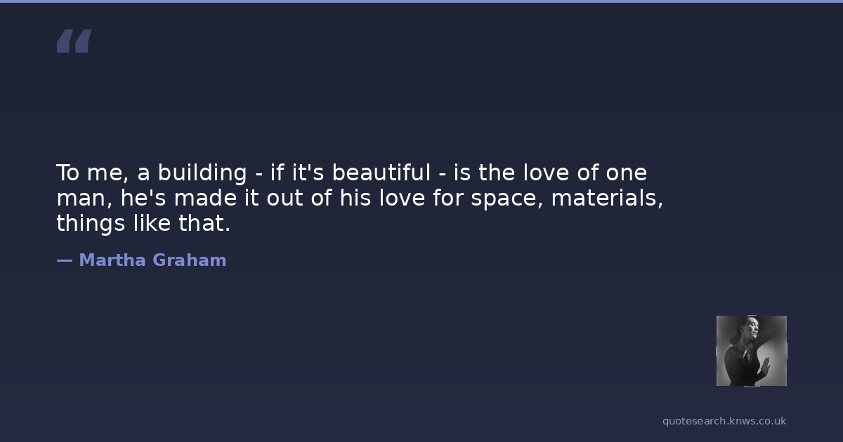 To me, a building - if it's beautiful - is the love of one man, he's made it out of his love for space, materials, things like that.