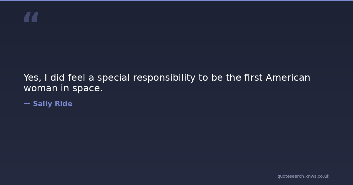 Yes, I did feel a special responsibility to be the first American woman in space.