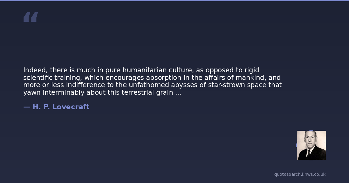 Indeed, there is much in pure humanitarian culture, as opposed to rigid scientific training, which encourages absorption in the affairs of mankind, and more or less indifference to the unfathomed abysses of star-strown space that yawn interminably about this terrestrial grain of dust.